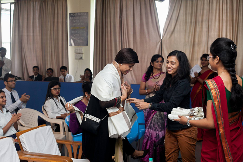 Ms. Rajeshwari Bhattacharyya felicitating Ms. Roshni M - Sr. Manager HR - Hexaware Technologies