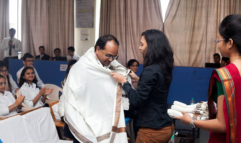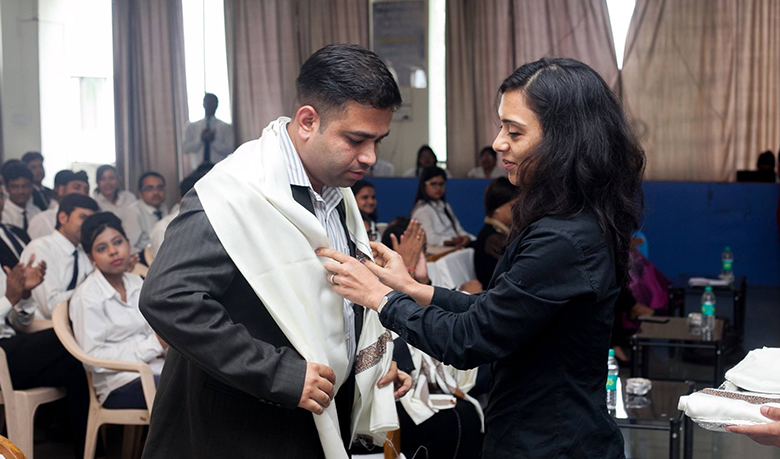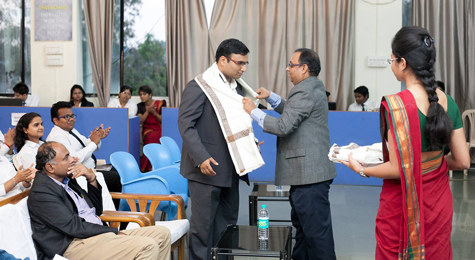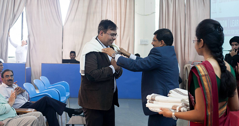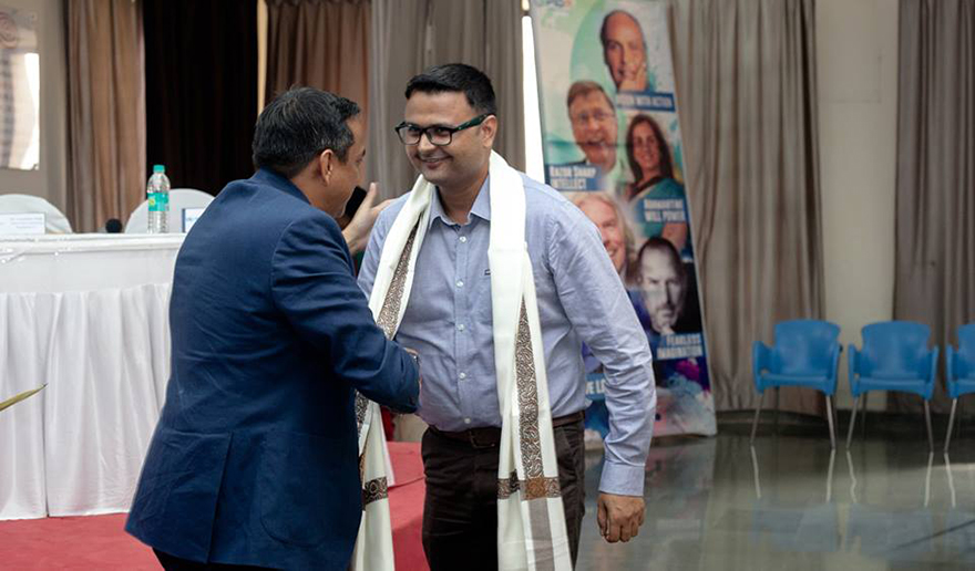 Ms. Rajeshwari Bhattacharyya felicitating Mr. Tanmay Parikh - AGM HR - Prabhat Dairy Ltd.