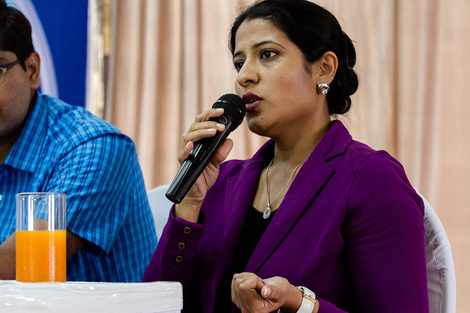 Ms. Rajeshwari Bhattacharyya - Sr. VP IT & BPE - ENIL (Radio Mirchi) introducing the topic to panel members and students