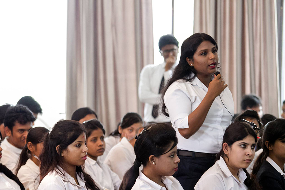 Students putting up questions in front of Panel Experts