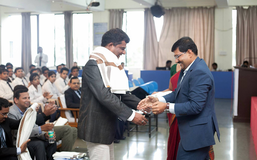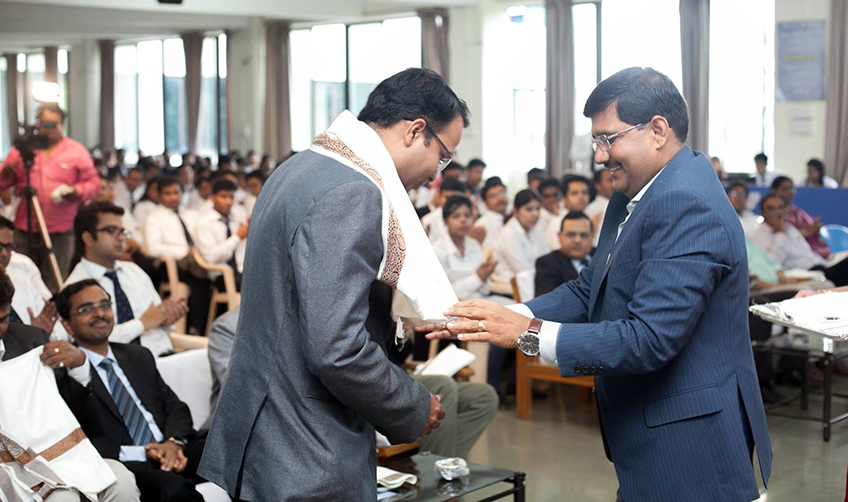 Mr. M K Tamuli felicitating Mr. Manish Kotwani - VP HR - Sterling Back Check